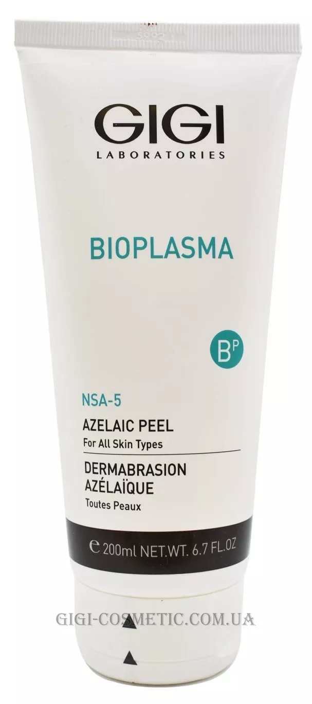 Пілінг GIGI "BIOPLASMA" з гелієвою текстурою на основі азелаїнової та гліколевої кислот 8%.